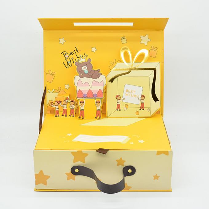 Η χονδρική βαλίτσα γενεθλίων συνήθειας διαμόρφωσε τα κιβώτια δώρων χαρτονιού μαγνητών κιβωτίων δώρων παιδιών με τρισδιάστατο σκάει επάνω και λαβές